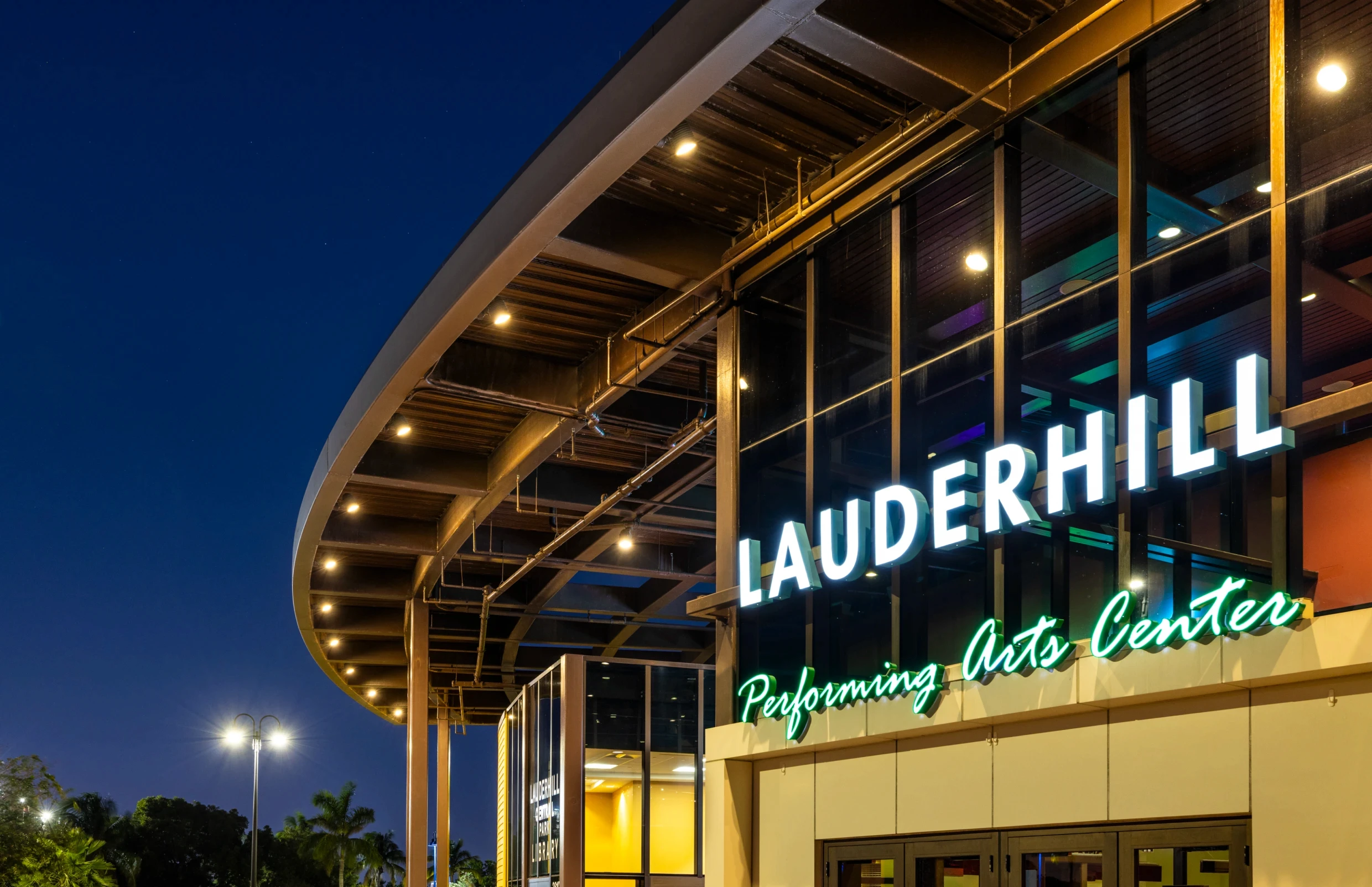 The result is a genuine civic asset: a performing arts center and library that serves Lauderhill with the scale and ambition its community deserves.